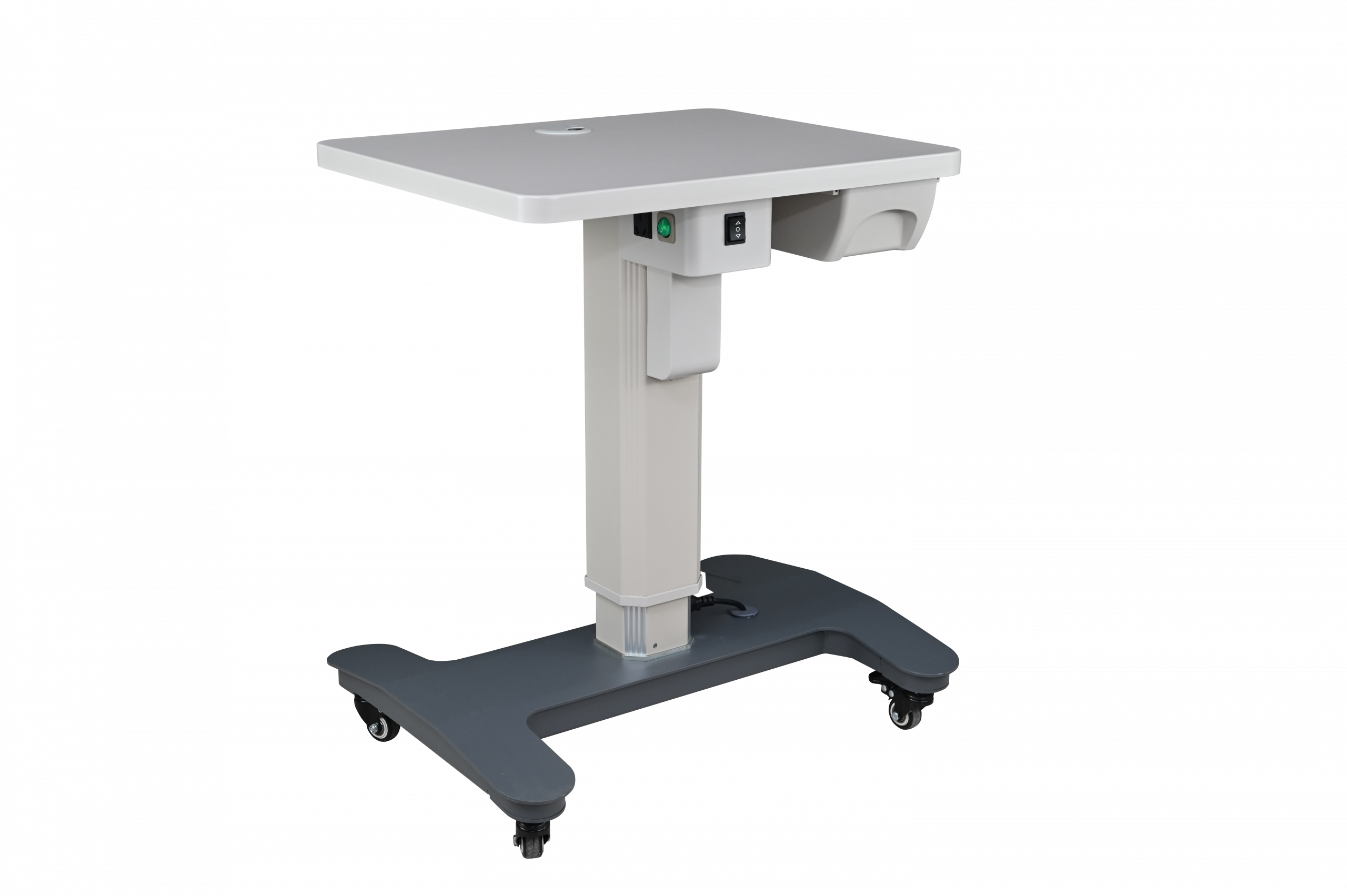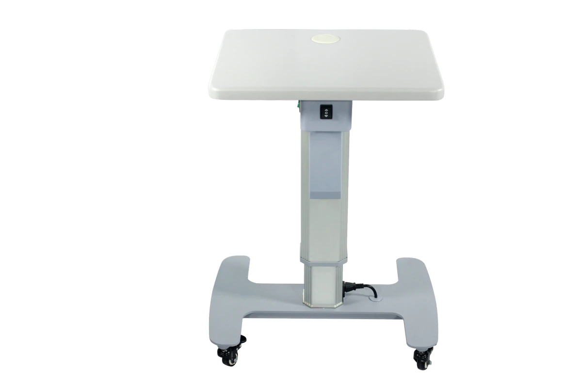 Mesa eléctrica HD-18A Compacta y portátil. Ocupa muy poco espacio. La base de metal la hace estable y duradera para su uso. Las ruedas de alta calidad proporcionan un movimiento seguro y fácil. Una toma de corriente justo debajo de la mesa para una fácil conexión al equipo.